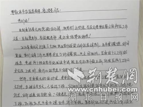荆楚网(湖北日报网)消息(通讯员 王爵文 张文文)11月25日,襄阳市市场监管局政务服务窗口收到一封来自企业的手写感谢信。据了解,本月,天际大药房日常工作比较复杂,续展登记业务流程也比较复杂。结果,两名执业药师的注册续展申请均在到期日前两个工作日内在线提交,距离注册到期还不到48小时。