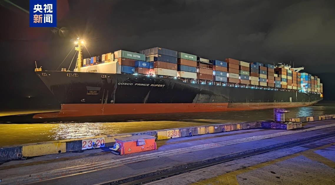 10月18日凌晨5时许,载有第八届中国国际进口博览会南非特快专递的香港籍船舶“东方英国”轮停靠在洋山港二期3号泊位。据悉,随着进博会临近,各国参展商连夜加班,将展品带到上海。