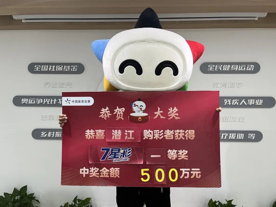 10月14日,7星彩票第25118期抽奖举行,中奖号码为“7 0 4 1 7 7 + 11”。全国一等奖共2项,其中浙江省、湖北省获奖。其中,湖北省潜江市47068号体育彩票销售点的彩民尤先生(华姓)在一次投注中赢得了500万元的大奖。
