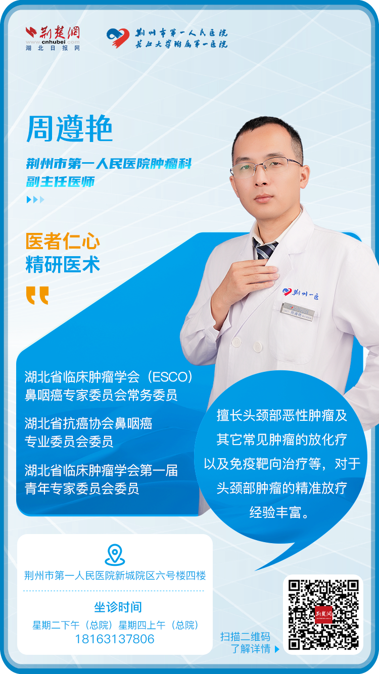 周尊艳:副主任医师,湖北省临床肿瘤学会(ESCO)鼻咽癌专家委员会常务委员,湖北省抗癌协会鼻咽癌专业委员会委员,湖北省临床肿瘤学会青年委员会首届青年委员,湖北省临床肿瘤学会首届头颈癌专家委员会委员,湖北省临床肿瘤学会首届头颈癌专家委员会委员临床,湖北省临床学会第一届头颈癌专业委员会委员。肿瘤学。
